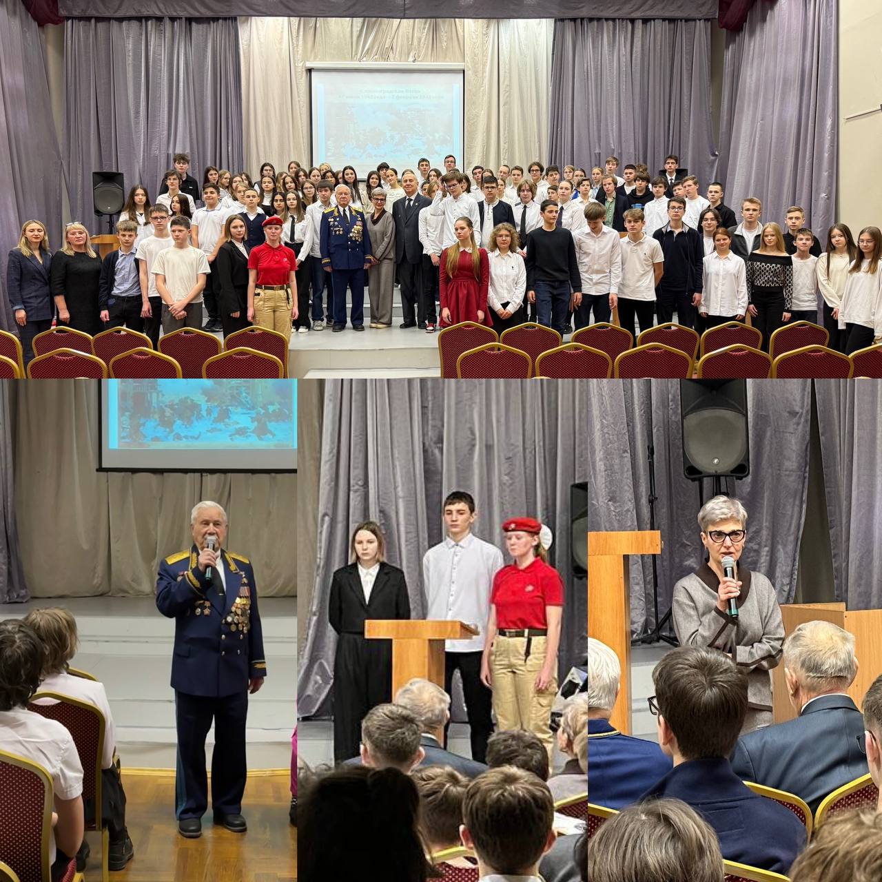 Вчера учеников 8А класса провели «Урок мужества» в актовом зале нашего школьного здания на Осеннем бульваре д.10, корп.3. Событие было посвящено 82-й годовщине Победы под Сталинградом.