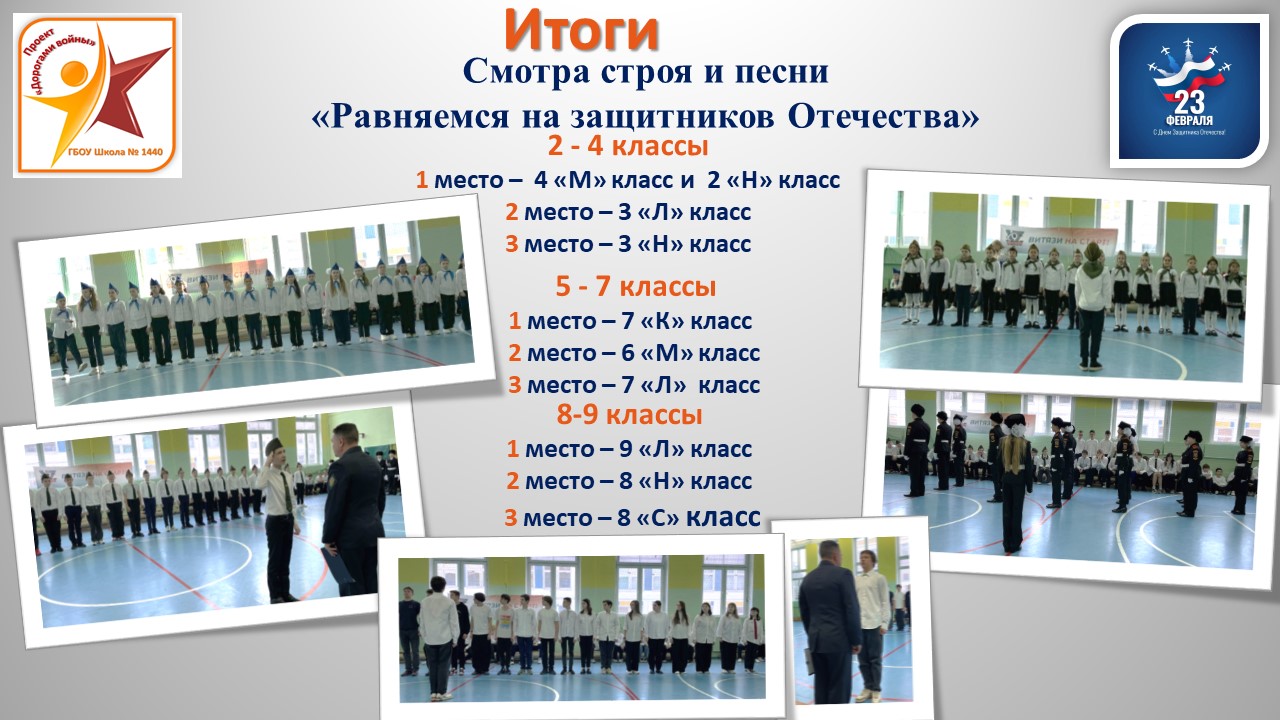 21 февраля состоялся смотр строя и песни "Равняемся на защитников Отечества", посвященный 23 февраля.