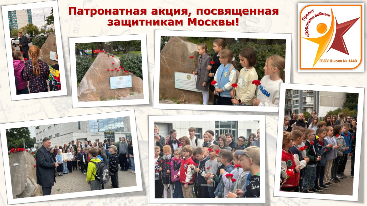 3 сентября 2025 года педагоги и учащиеся 3"З", 10"Е" и 11"Е" классов провели мемориально-патронатную акцию у Памятного камня на Рубежном проезде в память о защитниках Москвы.