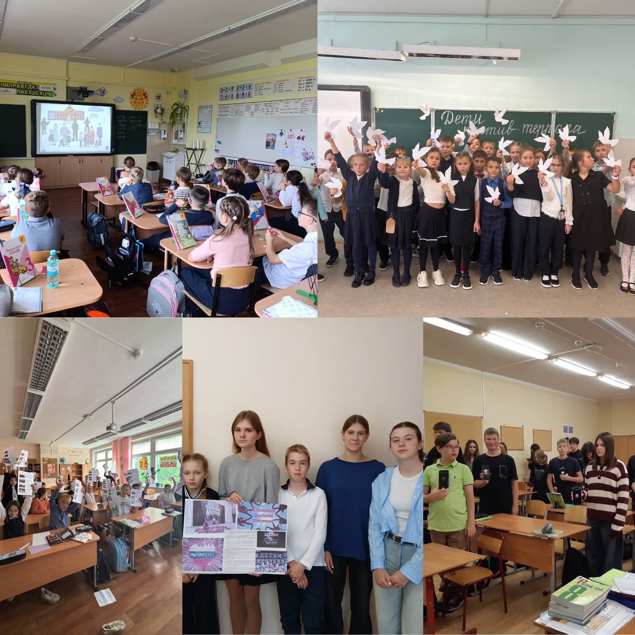 Проведено много разных классных часов на темы: «Беседа, посвященная трагедии в г. Беслане», «День солидарности в борьбе с терроризмом», «Подозрительный предмет», «Вместе против террора» и т.д. Ребята просмотрели и обсудили видеоматериалы о борьбе с террористической угрозой. С обучающимися начальных классов созданы памятки "Правила безопасности дома" и "Правила безопасности на улице и дорогах".