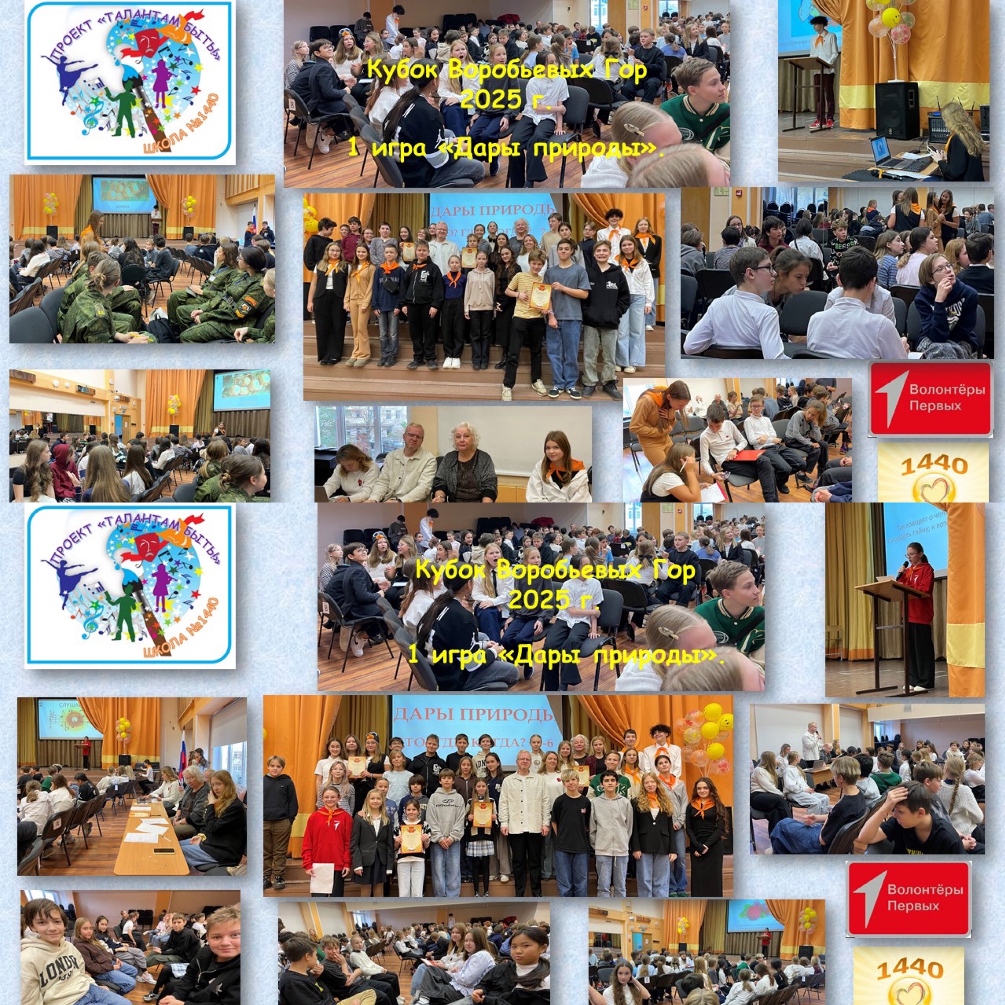 24 октября состоялась первая отборочная игра Кубка Воробьевых гор городского чемпионата по интеллектуальным играм. Тема игры «Дары природы». Играли команды 5-6 классов и команды 7-8 классов. Победителем среди 5-6 классов стала команда «Белые розы» 6 «Н» класса. Среди 7-8 классов победили команды «Крылатые» 7 «К» класса и команда «Орешки бигбоб» 7 «Н» класса. Игру провели волонтеры из отряда Первых.