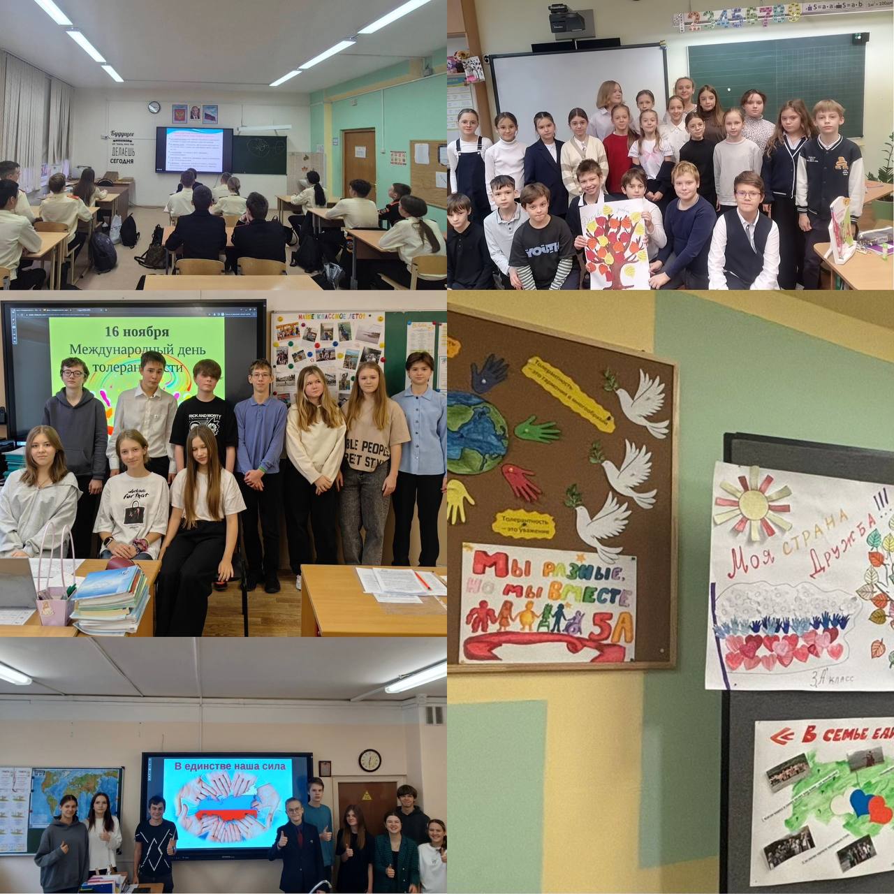 Проведено много разных классных часов на темы: «Мир начинается с уважения», «Ценности единства», «Свои и чужие», «Путь к толерантности».